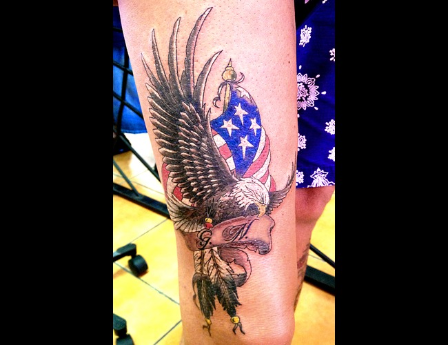 Jenny Lee Eagle American Flag Leg Tattoo Color