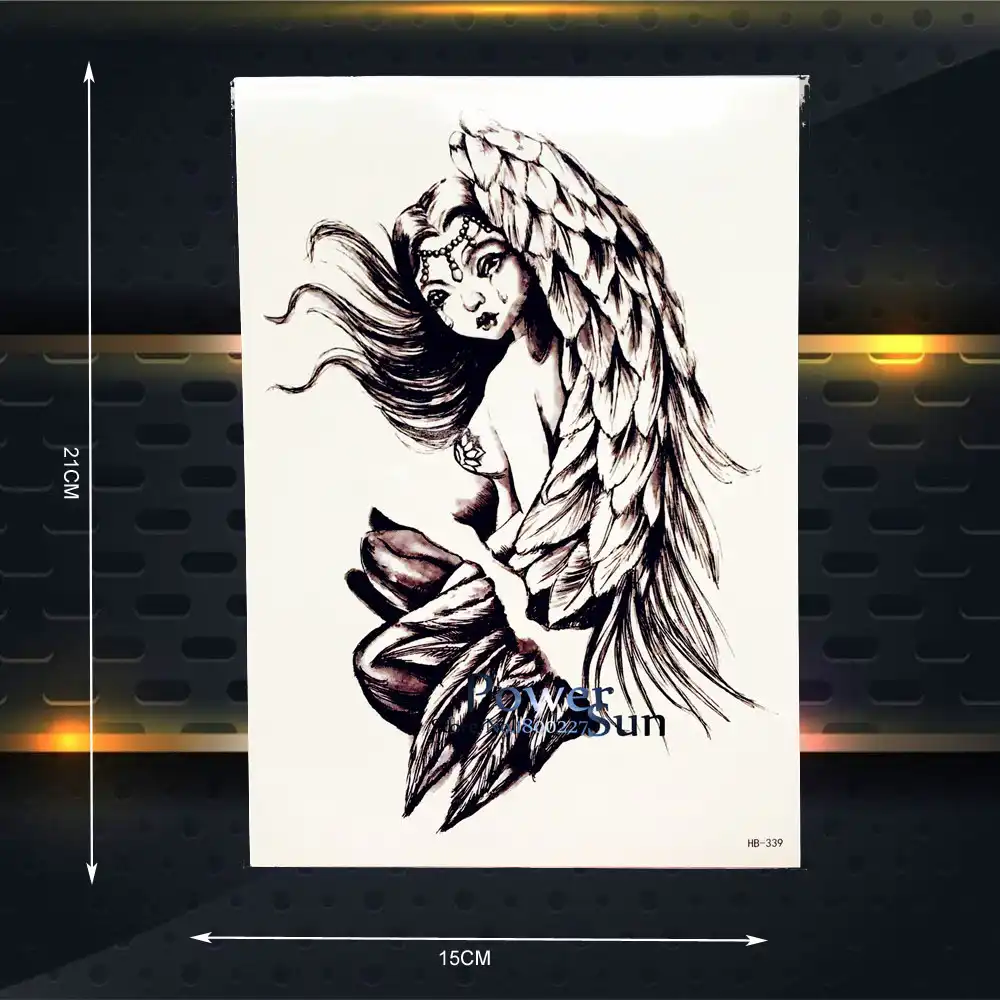 1pcs Big Cool Mens Black Wing Tattoos Beautiful Arm Back Angel